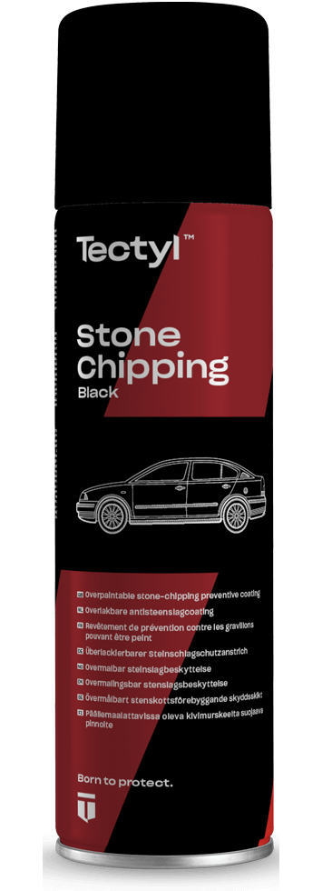 Tectyl Stone Chipping Black polimerizza in una pellicola nera, compatta, resistente e resistente.